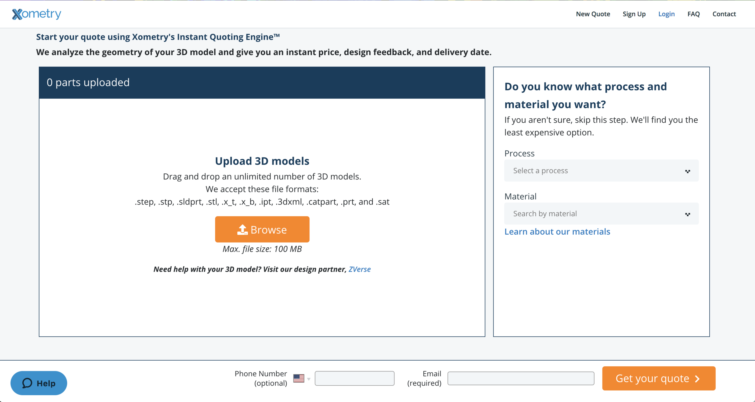 In order to give a customer an instant quote, a manufacturing process and material must be applied to the part. The default rule is to quote the part to the least expensive option. Customers can then change the chosen options to what they prefer. To solve for this, we provided a solution that presents the buyer with the best, most accurate price for their job in just a few key strokes.